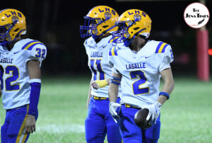 On the opening kickoff, Block fumbled the ball but still managed to recover it, and their luck would continue after going three and out. A line drive punt went straight to the gunner for LaSalle’s Daniel Stowe, and when he went to catch it (who can blame him, it’s every high school athlete’s dream to return a punt) it bounced off his chest and Block recovered the ball.