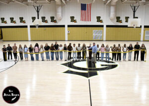 Prior to the meal and program, a special event occurred inside the Guy Campbell Memorial Gymnasium, where a ribbon cutting ceremony was held for the newly restored basketball court with a special time of prayer lead by Phil Crawford.