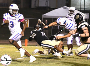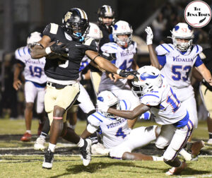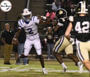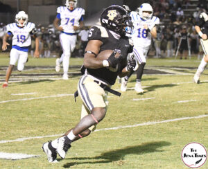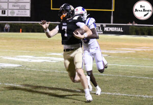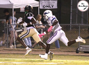 On Vidalia’s first offensive play they would score on a long 78-yard touchdown pass from Michael Randall to Elmari Lewis to go up 8-0 and quiet the Giants crowd. The Giants, however, would answer immediately as on the kickoff Daniel Hatcher would return it 73 yards for a touchdown to tie the game at 8. The Jena defense would settle in and then force Vidalia to either punt or turn it over on downs on their next four offensive possessions.