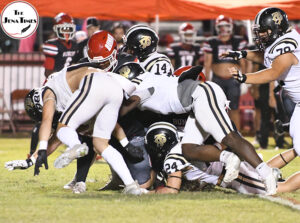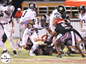 The Giants would go on to win 68-45 to improve to 7-1 and 3-0 in district play. The Jena offensive line would lead the way as their blocking would lead to 491 rushing yards and 622 total yards in the game.