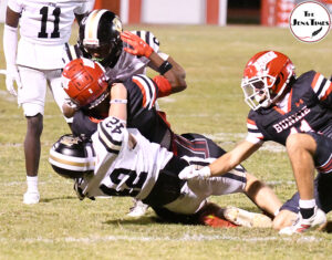 The captains for the Giants would be seniors Cale Parker, Luke Smith, Bubba Stevens, and Sedrick Wilson. Bunkie would win the toss and would elect to receive the opening kickoff. The Jena defense came into the game struggling to get stops in district play. But on this night the defense would come together to give a great performance as in the first half Bunkie would have the ball for 7 possessions and the Giants defense would force three punts and two turnovers in the first half. This would allow the high scoring Jena offense to build a lead.