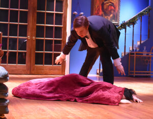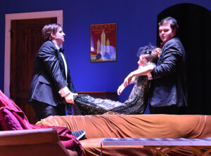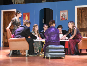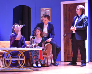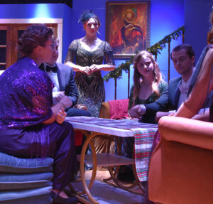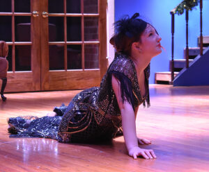 The cast featured Tanner Boyett as William Gillette – the Broadway star whose cast party turns deadly – who embraces his Sherlock Holmes persona to track down a killer. Joining Boyett to make up the cast were students Brayden Hood as Felix Geisel, Sophie Reaves as Aggie Wheeler, Callie Davidson as Madge Geisel, Greyor Harris as Simon Bright, Iris Bradford as Martha Gillette, Raylee Guillory as Daria Chase and Ava McGuffee as the Inspector Harriet Goring.