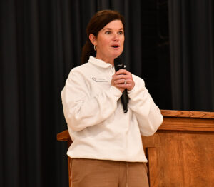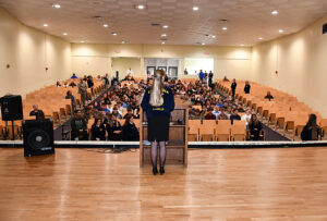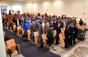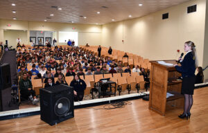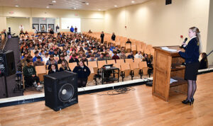 The assembly began with an official meeting of the LaSalle chapter, where President Lexi Jo Lasiter guided the chapter through the official protocol, including having each officer recite their duties.