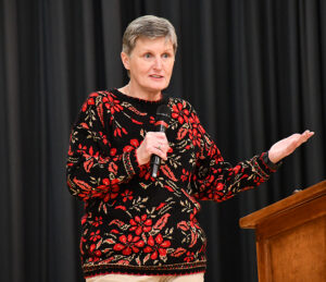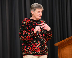 “I was once sitting out there just like you,” she said. “I never would have imagined I would one day be president of a university. I was the first one in my family to graduate college, slept on flour sacks and worked all my life – even while in high school. But I just kept working and opportunities came.”