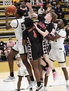 Then it would appear that disaster would hit Jena as junior forward Daniel Hatcher would pick up his 4th foul then his 5th foul on a technical foul that would foul him out of the game. Jena led at this point 47-43 but this would give Caldwell four free throws and possession of the ball. Caldwell would make two out of four free throws to cut the deficit to two. Caldwell would have a shot at the basket but would miss allowing Jena to get the rebound. However, a turnover at the Caldwell basket would allow Brennan Hardy to tie the game at 47 with 36 seconds remaining in the contest.