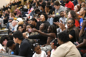 Jena would then inbound the ball to senior guard Xavier Brown who would pass it to his twin brother Zac Brown who would dribble to the base line and put up a shot that would go over the rim to the other side. Senior forward Zadrien Cooper would rebound the ball and pass it out to senior Gus Morphis who entered the game for Daniel Hatcher when he fouled out. Morphis would be wide open on the wing in front of the Caldwell fan section and would put up the threepoint shot that would go through the net barely touching it and giving the Giants a 50-47 lead with 11 seconds left.