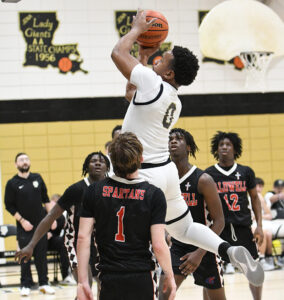 The #13 Giants took on district rival #20 Caldwell Spartans February 27 in Jena for the first round of the Division III Non-Select state playoffs. These two teams met back on January 9th in a district contest with the Giants making some big plays late to secure a 47-41 victory in Columbia. Jena would come in with a veteran team looking to make a run in their senior season. Caldwell came in looking to pull the upset as they had a large cheering section that at times made the Guy Campbell Memorial Gym sound like a Caldwell home game.