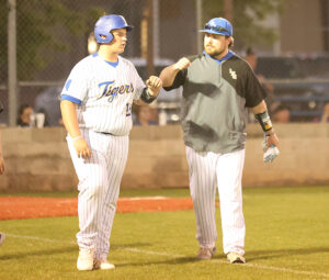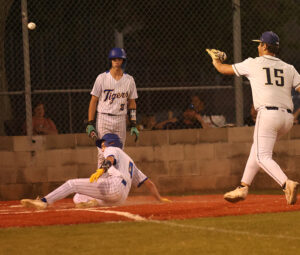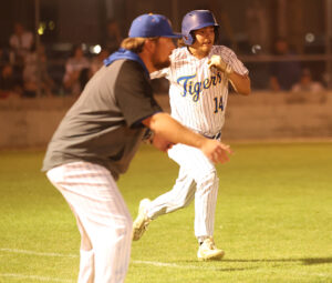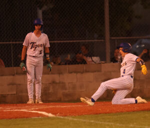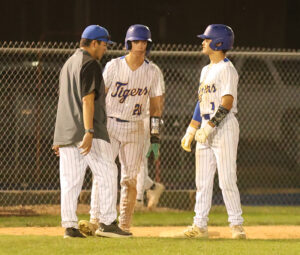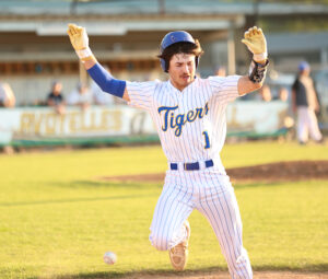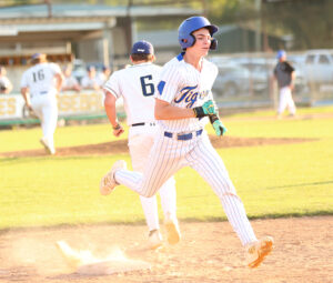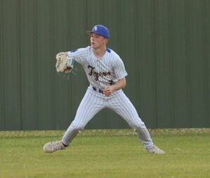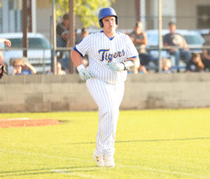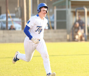 Lane Burnham had a great game and collected four hits in four at bats against the Mustangs. Burnham singled in the second inning, the third inning, the fifth inning, and the sixth inning. The Tigers tallied 12 hits in the game.