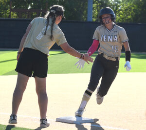 Pineville would take the lead in the top of the 6th 1-0 but Jena would answer back with a solo homerun from senior shortstop Callie Decker to tie the game at 1. The two teams would go into extra innings.